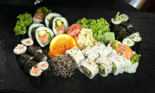 z serkiem, awokado, ogórkiem, łososiem, tuńczykiem i maślaną -