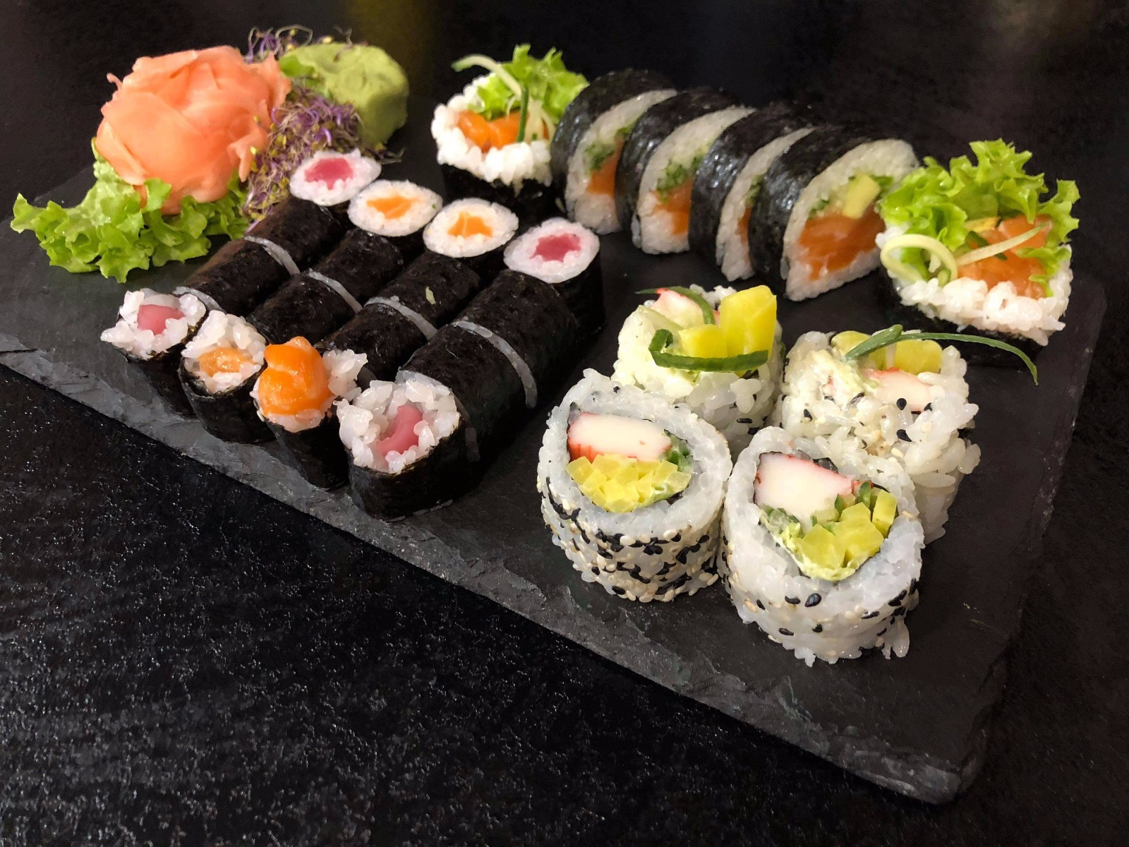 6 szt. futomaki łosoś, sałata, serek, awokado,