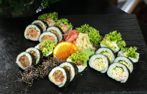 Futomaki z tatarem z łososia